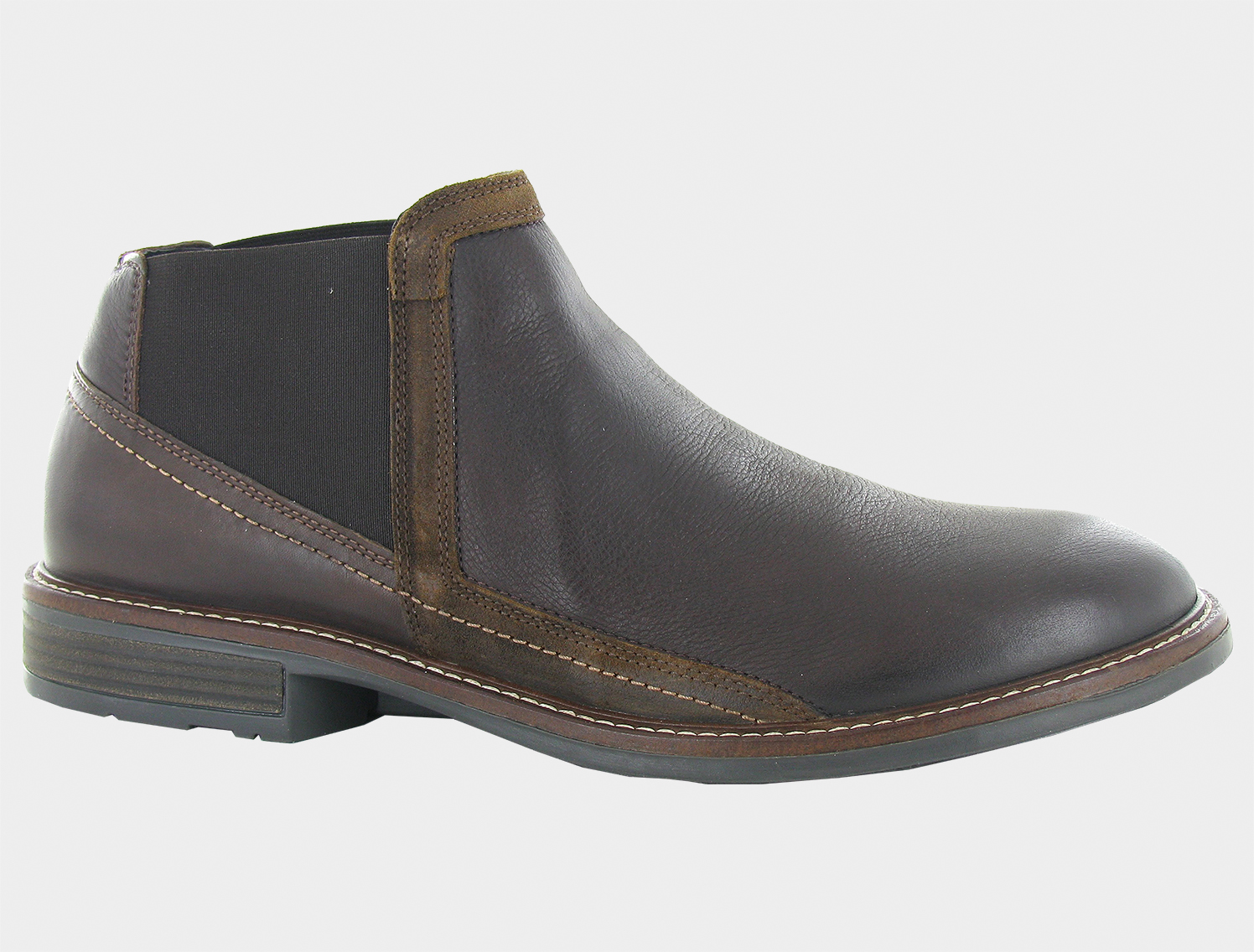 The Naot Business is a stylish ankle boot with contrasting leathers. This style features double gore and a padded instep. The Business features padded technical lining in the front for comfort, warmth & moisture absorption. The Executive Collection features a 1.75" TPR sole with a metal shank. This collection uses a hand-sewn Strobel construction making it strong and extremely flexible.