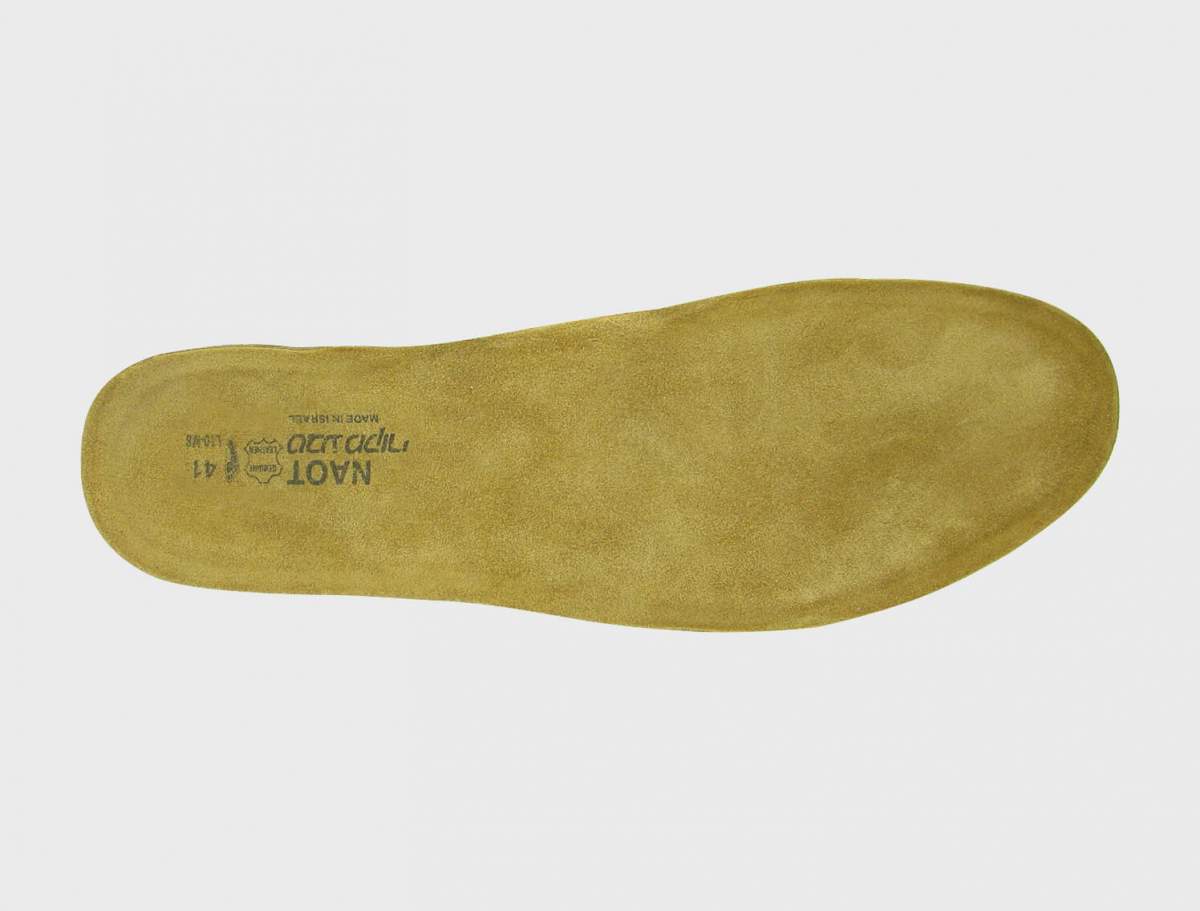 Naot's Executive Footbed is removable, anatomic and made of cork & latex covered in suede. This footbed molds to the shape of the foot with wear like a footprint in the sand.