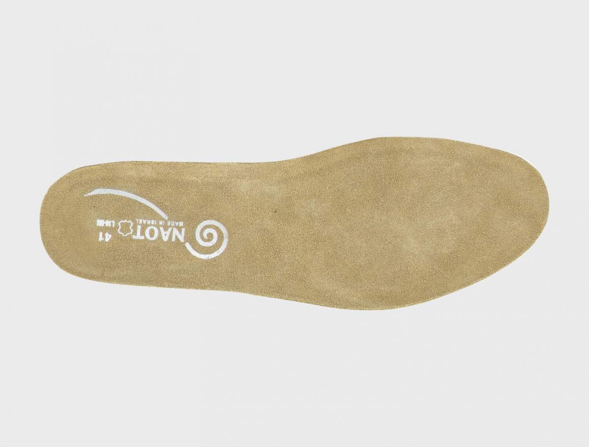Naot's Serengeti Footbed is removable, anatomic and made of cork & latex covered in suede. This footbed molds to the shape of the foot with wear like a footprint in the sand.