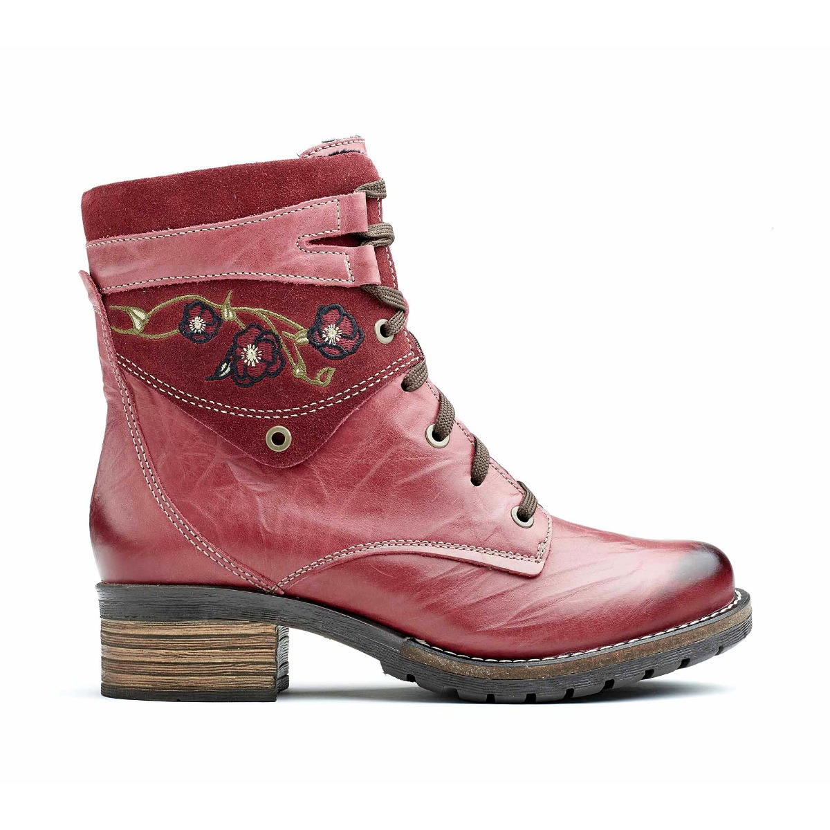 Our iconic short padded lace-up boot with embroidery on the Suede collar.