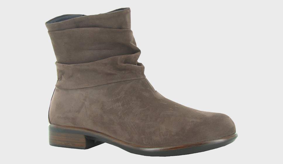 Combining cute folds with smooth, neutral nubuck, the Brisote is a side zipper boot that packs timeless fall fashion. Its look is only enhanced from within by Naot's removable, anatomic cork & latex footbed, which is wrapped in microfiber & leather and molds to the shape of the foot with wear. The Aura Collection features a 1.5" polyurethane sole with a metal shank which is extremely lightweight, durable & abrasive to prevent slipping. This collection uses a hand-sewn Strobel construction making it strong and extremely flexible.