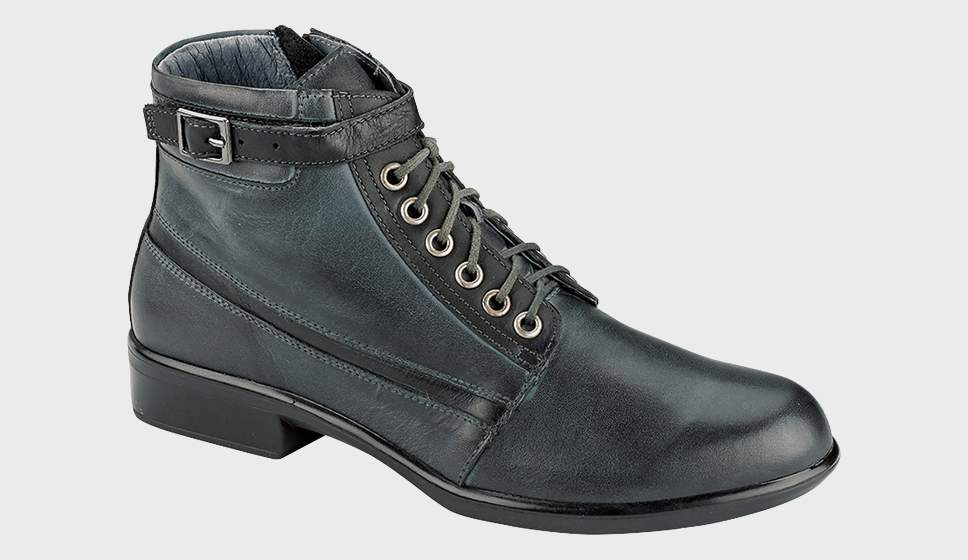 The Naot Kona is fashionable boot that provides a sleek and dressy look. This style features a hook and loop faux buckle as well as a zipper. This boot has padded technical lining for comfort, warmth & moisture absorption. Naot's removable, anatomic cork & latex footbed is wrapped in microfiber & leather and molds to the shape of the foot with wear. The Aura Collection features a 1.5" polyurethane sole with a metal shank which is extremely lightweight, durable & abrasive to prevent slipping. This collection uses a hand-sewn Strobel construction making it strong and extremely flexible.