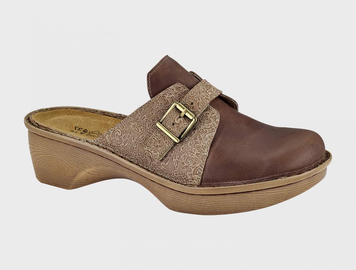The Avignon is a great everyday clog with a faux buckle hook & loop strap at the instep for adjustability. The Avignon has a padded tongue for extra comfort & contrasting leathers for a unique look. This style has padded technical lining for comfort, warmth & moisture absorption. Naot's removable, anatomic cork & latex footbed is wrapped in pampering suede and molds to the foot with wear. The Cosmopolitan Collection features a 2" polyurethane sole with a metal shank and is extremely lightweight and durable.