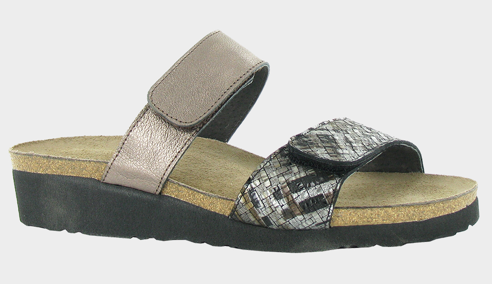 The Althea is a style you can seamlessly slide into for Spring. It's double hook and loop straps allow for easy on/off. Naot's anatomic cork & latex footbed is wrapped in a pampering suede and molds to the shape of the foot with wear.