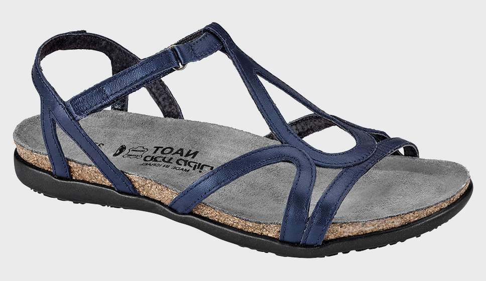 The Dorith is gladiator inspired sandal with a hook & loop strap and backstrap for added stability and support. The Dorith has a feminine design at the front. Naot's anatomic cork & latex footbed is wrapped in a pampering suede and molds to the shape of the foot with wear. The Flat Elegant Collection features a .75" TPR sole.