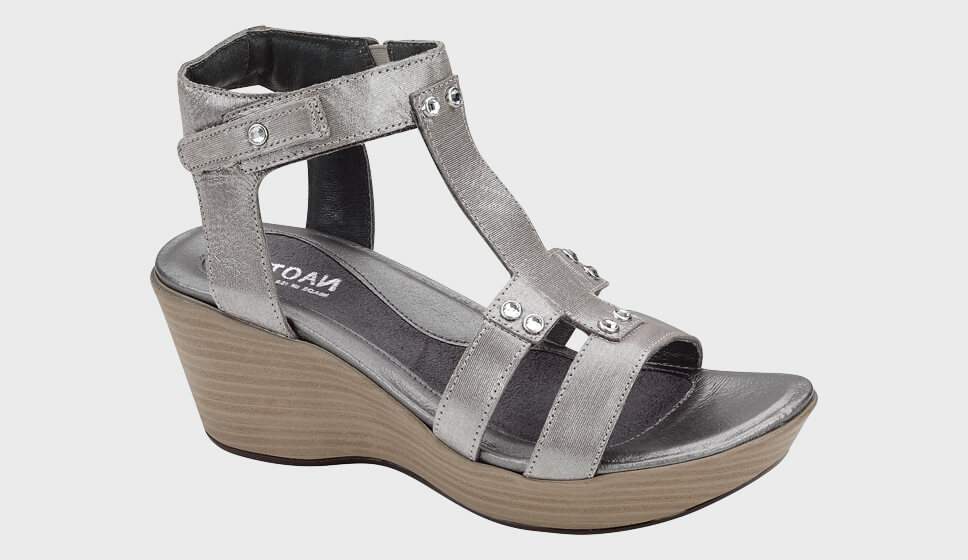 The Flirt is a trendy wedge with small rivet accents. This sandal has a padded hook & loop closure at the ankle, a slightly padded front strap and gore for adjustability. Naot's anatomic cork & latex footbed is wrapped in leather with a microfiber center to prevent slipping and molds to the shape of the foot with wear. The Impulse Collection features a TPR sole which is extremely lightweight. This sole offers the look of a 2.75" wedge without the feel.