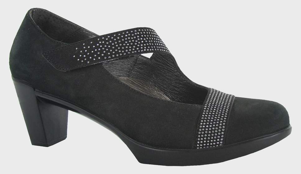 The Abbracci is a feminine maryjane heel with delicate rivets cascading down the hook & loop strap at the instep. This style has a slightly padded heel cup for support & extra comfort. Naot's anatomic cork & memory foam footbed is wrapped in leather & microfiber and molds to the shape of the foot with wear. This collection uses a hand-sewn Strobel construction making it strong and extremely flexible. The Prima Bella Collection features a 2 3/4"" polyurethane sole with a metal shank.