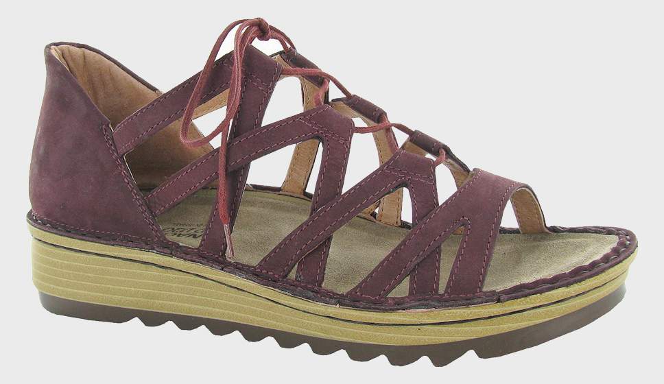 The Yarrow is an on trend ghillie lace up sandal. This style has a padded heel cup for ultimate comfort and laces for accessibility. Naot's removable, anatomic cork & latex footbed is wrapped in pampering suede and molds to the shape of the foot with wear. The Bloom Collection features a 1.75'' polyurethane sole which is extremely lightweight, and durable.