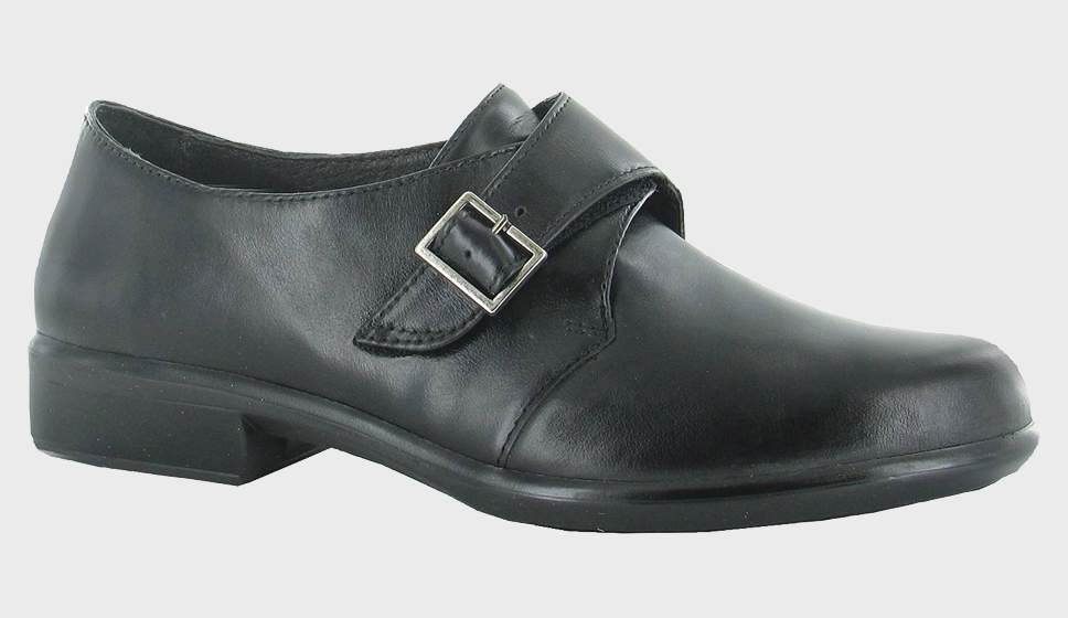 The Naot Borasco is a comfortable monkstrap shoe. This style has a padded heel cup & tongue for ultimate comfort. The Borasco has a faux buckle hook & loop strap. This shoe has padded technical lining for comfort, warmth & moisture absorption. Naot's removable, anatomic cork & latex footbed is wrapped in microfiber & leather and molds to the shape of the foot with wear. The Aura Collection features a 1.5" polyurethane sole with a metal shank which is extremely lightweight, durable & abrasive to prevent slipping. This collection uses a hand-sewn Strobel construction making it strong and extremely flexible.