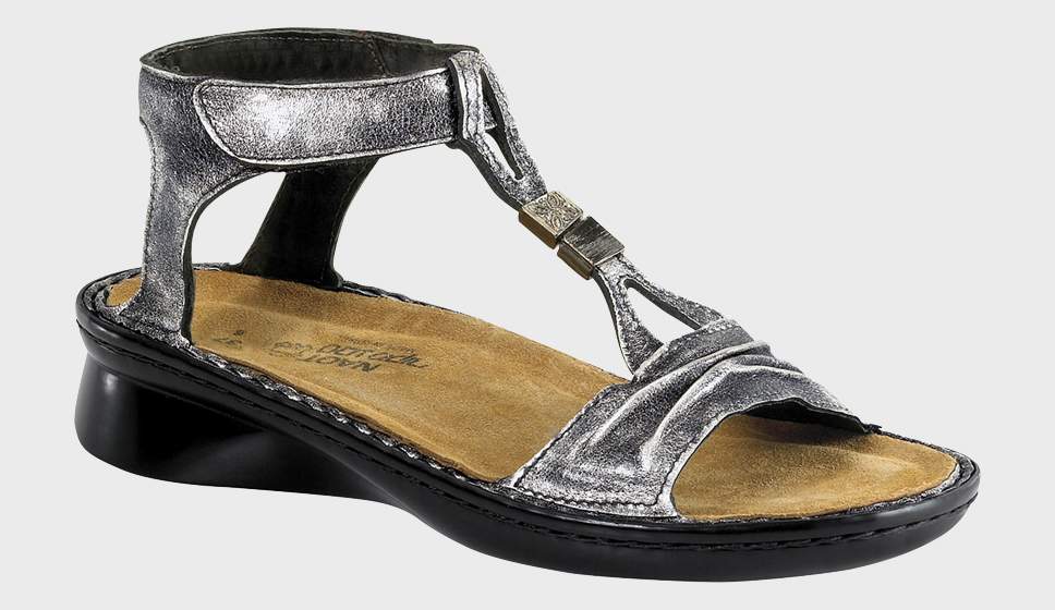 The Cymbal is a trendy gladiator inspired sandal with a unique ornament. This sandal has a padded hook & loop strap at the ankle and side panels in the back for extra support. Naot's removable, anatomic cork & latex footbed is wrapped in pampering suede and molds to the shape of the foot with wear. The Allegro Collection features a 1.5" polyurethane sole which is extremely lightweight and durable.