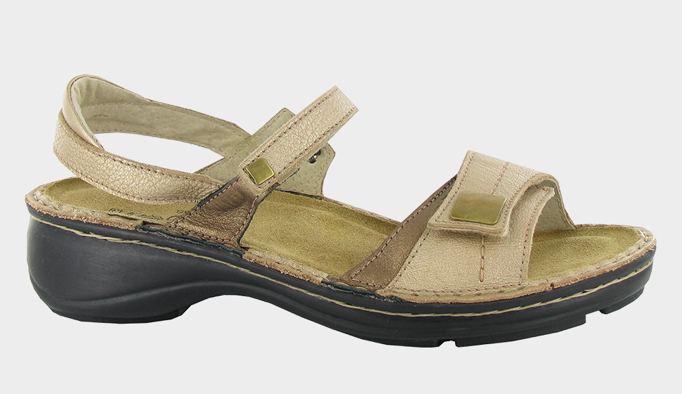 The Papaya is a fully adjustable backstrap sandal with ornament accents. This sandal has a hook & loop closure at both the instep and front. The backstrap and front strap are padded for additional comfort. Naot's removable, anatomic cork & latex footbed is wrapped in pampering suede and molds to the shape of the foot with wear. The Floral Collection features a 1.5" polyurethane sole with a metal shank and is extremely lightweight and durable.