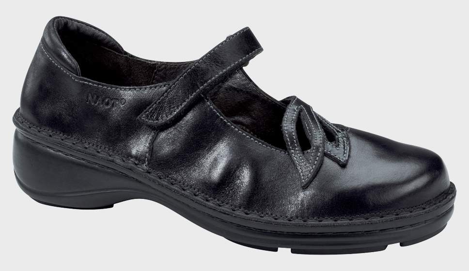 The Primrose is a great everyday shoe with a hook & loop strap at the instep for adjustability. Naot's removable, anatomic cork & latex footbed is wrapped in pampering suede and molds to the shape of the foot with wear. The Floral Collection features a 1.5" polyurethane sole with a metal shank and is extremely lightweight and durable.