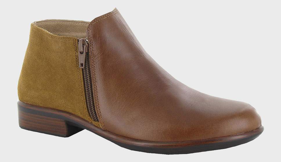 The Naot Helm is the perfect bootie with double zippers for accessibility. The Helm has a padded heel cup & instep for ultimate comfort. This boot has padded technical lining for comfort, warmth & moisture absorption. Naot's removable, anatomic cork & latex footbed is wrapped in microfiber & leather and molds to the shape of the foot with wear. The Aura Collection features a 1.5" polyurethane sole with a metal shank which is extremely lightweight, durable & abrasive to prevent slipping. This collection uses a hand-sewn Strobel construction making it strong and extremely flexible. Larger Sizes Available.