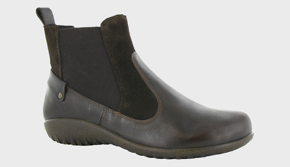 The Naot Konini is a slip on ankle boot. This style has a heel cup for stability. The Konini features a pull tab & double gore for accessibility. This boot has padded technical lining for comfort, warmth & moisture absorption. Naot's removable, anatomic cork & latex footbed is wrapped in pampering suede and molds to the shape of the foot with wear. The Koru Collection features 1" polyurethane sole which is extremely lightweight, durable & slip resistant. This collection uses a hand-sewn Strobel construction making it strong and extremely flexible.