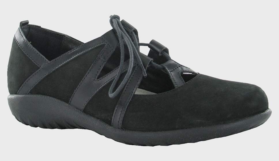 The Naot Timu is a feminine maryjane with laces. The front portion of the Timu features padded technical lining which provides comfort and absorbs moisture. This style also features a padded heel cup and a padded upper for extra comfort. Naot's removable, anatomic cork & latex footbed is wrapped in pampering suede and molds to the shape of the foot with wear. The Koru Collection features a 1" polyurethane sole which is extremely lightweight, durable & slip resistant. This collection uses a hand-sewn Strobel construction making it strong and extremely flexible.