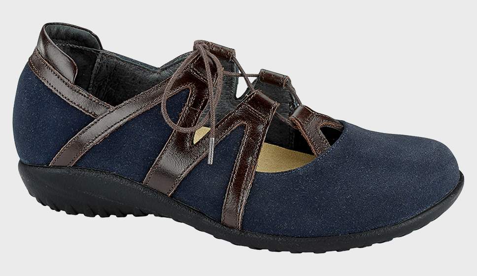 The Naot Timu is a feminine maryjane with laces. The front portion of the Timu features padded technical lining which provides comfort and absorbs moisture. This style also features a padded heel cup and a padded upper for extra comfort. Naot's removable, anatomic cork & latex footbed is wrapped in pampering suede and molds to the shape of the foot with wear. The Koru Collection features a 1" polyurethane sole which is extremely lightweight, durable & slip resistant. This collection uses a hand-sewn Strobel construction making it strong and extremely flexible.
