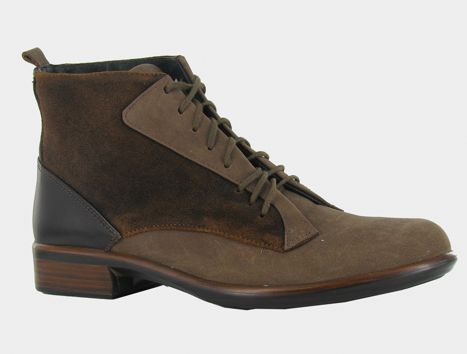 Naot Mistral is a fashionable orthotic-friendly boot. This dressy low-heeled ankle boot features a front lace closure and perfect for any occasion. This boot has padded technical lining for comfort, warmth & moisture absorption. Naot's removable, anatomic cork & latex footbed is wrapped in microfiber & leather and molds to the shape of the foot with wear. The Aura Collection features a 1.5" polyurethane sole with a metal shank which is extremely lightweight, durable & abrasive to prevent slipping. This collection uses a hand-sewn Strobel construction making it strong and extremely flexible.
