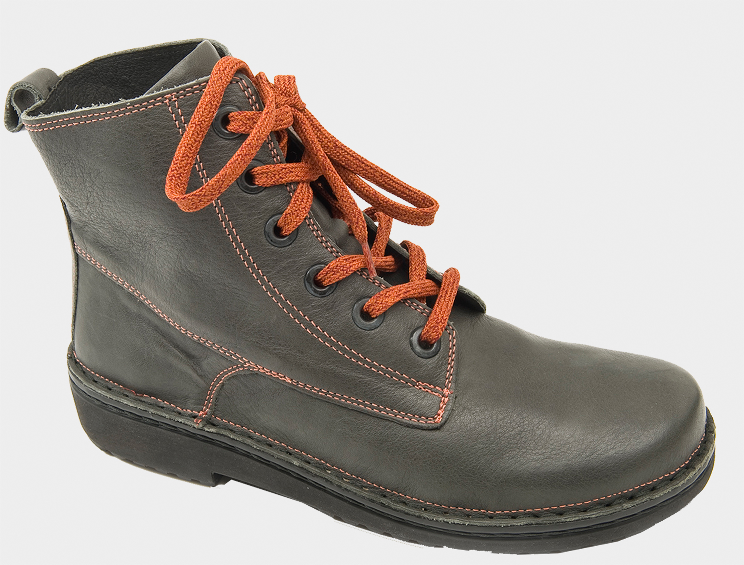The Naot Claudia is a mid-calf leather lace up boot. The Claudia has a padded heel cup for comfort & support. Naot's removable, anatomic cork & latex footbed is wrapped in pampering suede and molds to the shape of the foot with wear. The Scandinavian Collection features a 1.25" polyurethane sole which is extremely lightweight and durable.