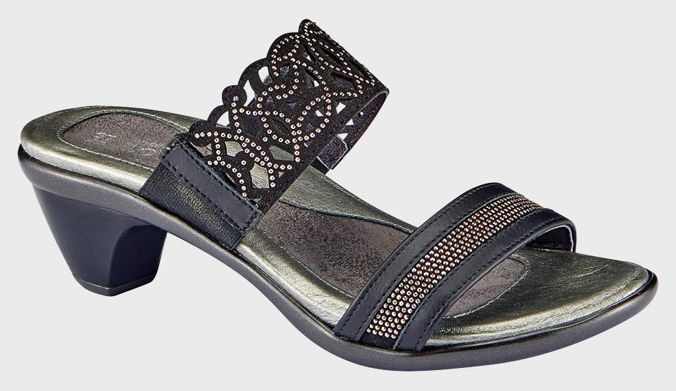 The Contempo is a beautiful dress sandal with delicate rivet accents. Double gore allows for adjustability creating the perfect fit. Naot's anatomic cork & latex footbed is wrapped in leather with a microfiber center to prevent slipping and molds to the shape of the foot with wear. The Avantgarde Collection features a TPR sole with a metal shank. This sole offers the look of a 2" heel without the feel.