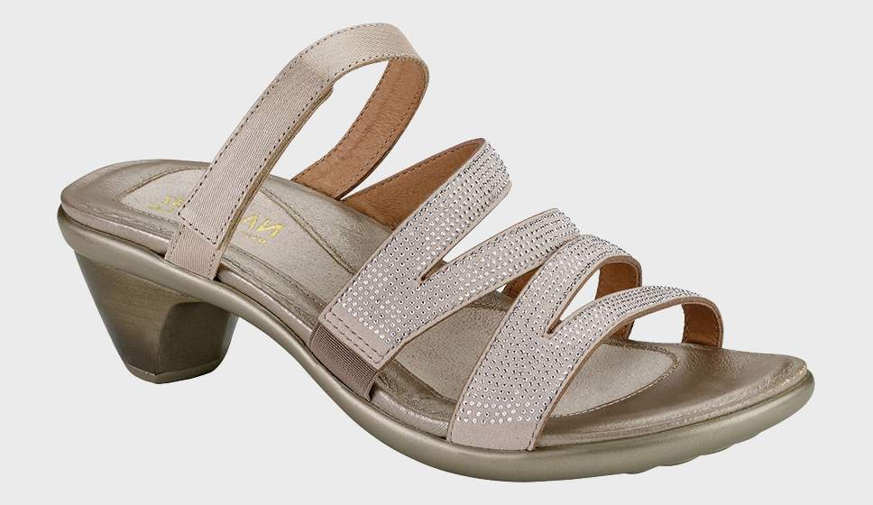 The Formal is the perfect slide heel for all of your festive events! This sandal has a hook & loop instep strap so you can create the perfect fit. The Formal has gore at the middle strap to allow for additional adjustability. The delicate rivet accents make this shoe stand out from the crowd. Naot's anatomic cork & latex footbed is wrapped in leather with a microfiber center to prevent slipping and molds to the shape of the foot with wear. The Avantgarde Collection features a TPR sole with a metal shank. This sole offers the look of a 2" heel without the feel.