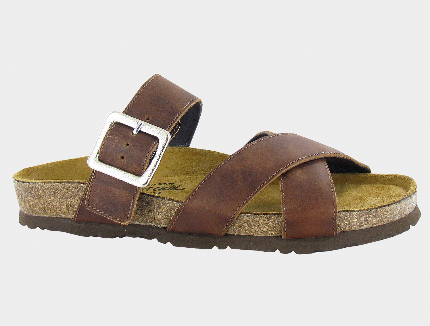 An easy versatile slip on with crisscross straps and an iconic buckle. The Chicago slide is the perfect everyday sandal. Naot's anatomic cork & latex footbed is wrapped in a pampering suede and molds to the shape of the foot with wear. The Classic Collection features a 1.25" EVA sole.