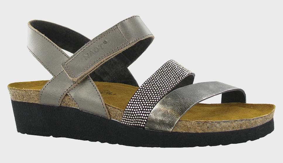 Krista Pewter Lthr/Metal Lthr/Black w/ Silver Rivets