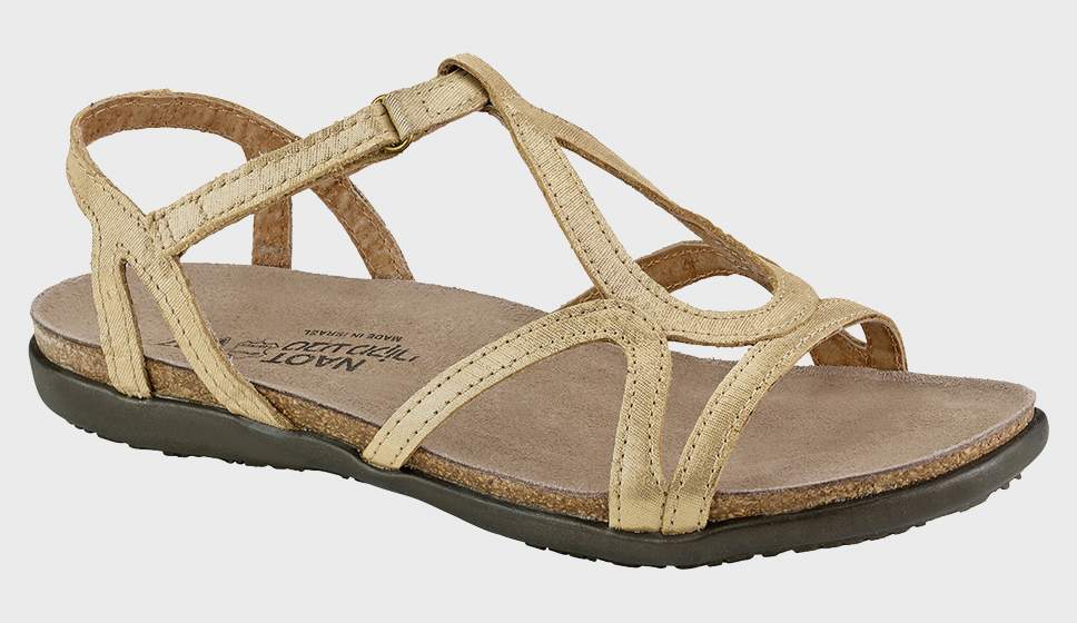 The Dorith is gladiator inspired sandal with a hook & loop strap and backstrap for added stability and support. The Dorith has a feminine design at the front. Naot's anatomic cork & latex footbed is wrapped in a pampering suede and molds to the shape of the foot with wear. The Flat Elegant Collection features a .75" TPR sole.
