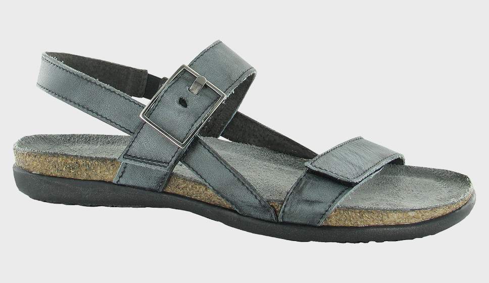 The Norah is the perfect everyday sandal. An oversized faux buckle & hook & loop front make this sandal completely adjustable. Naot's anatomic cork & latex footbed is wrapped in a pampering suede and molds to the shape of the foot with wear. The Flat Elegant Collection features a .75" TPR sole.