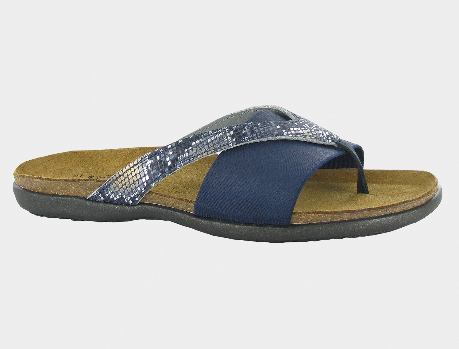 The Penelope is the perfect thong sandal to add to your sandal collection. Naot's anatomic cork & latex footbed is wrapped in a pampering suede and molds to the shape of the foot with wear. The Flat Elegant Collection features a .75" TPR sole.