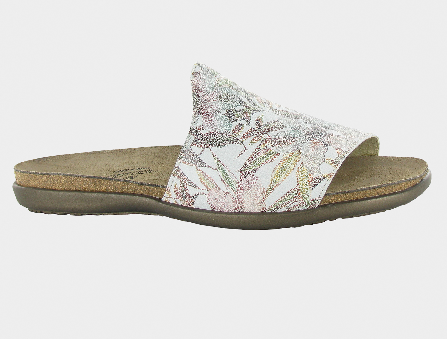 The Naot Skylar is the perfect everyday slip on, with hidden gore for adjustability. Naot's anatomic cork & latex footbed is wrapped in a pampering suede and molds to the shape of the foot with wear. The Flat Elegant Collection features a .75" TPR sole.