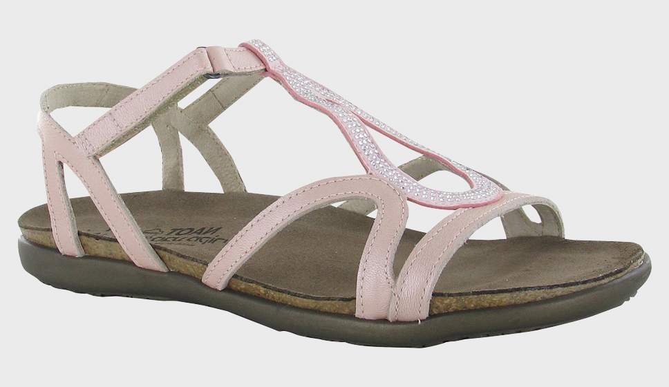 The Tamara is gladiator inspired sandal with rivet accents. This style features a hook & loop closure at the instep and a backstrap for stability and support. Naot's anatomic cork & latex footbed is wrapped in a pampering suede and molds to the shape of the foot with wear. The Flat Elegant Collection features a .75" TPR sole.