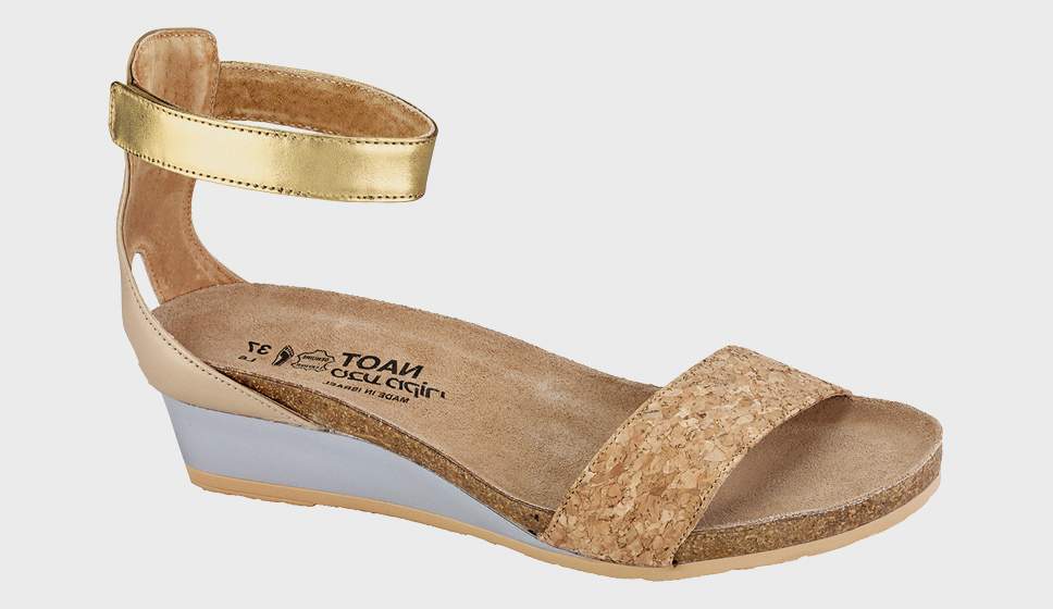 The Naot Pixie is a stylish wedge sandal with contrasting leathers. This style features a hook and loop ankle strap for stability. Naot's anatomic cork & latex footbed is wrapped in a pampering suede and molds to the shape of the foot with wear.