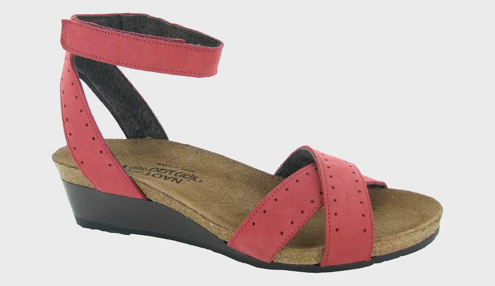 With stylish circular cutouts backed with a subtle underlay, the Wand will have you feeling stylish while walking in comfort. Naot's anatomic cork & latex footbed is wrapped in a pampering suede and molds to the shape of the foot with wear.