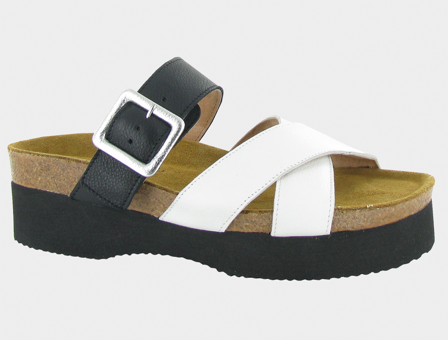 The Juliette is a platform slide with crisscross straps & an iconic buckle. Naot's anatomic cork & latex footbed is wrapped in a pampering suede and molds to the shape of the foot with wear. The Highrise Collection features a 1.75" EVA sole.