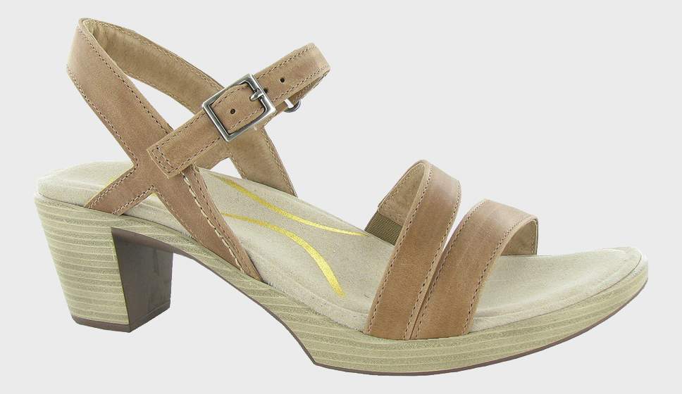 The Bounty is the perfect heel. This style has a padded backstrap & front strap for ultimate comfort. The Bounty features a faux buckle hook & loop closure at the instep & gore at the front for adjustability. Naot's anatomic cork & latex footbed is wrapped in pampering suede and molds to the shape of the foot with wear. The Supreme Collection features a metal shank and provides the look of a 2.25" heel without the feel.