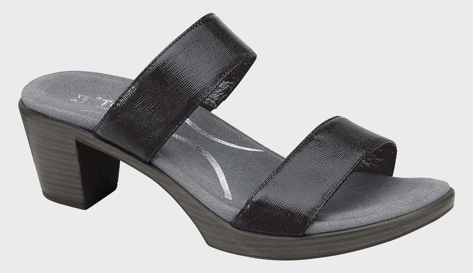 The Naot Fate is a stylish heel with a dressier look. Naot's anatomic cork & latex footbed is wrapped in pampering suede and molds to the shape of the foot with wear. The Supreme Collection features a metal shank and provides the look of a 2.25" heel without the feel.