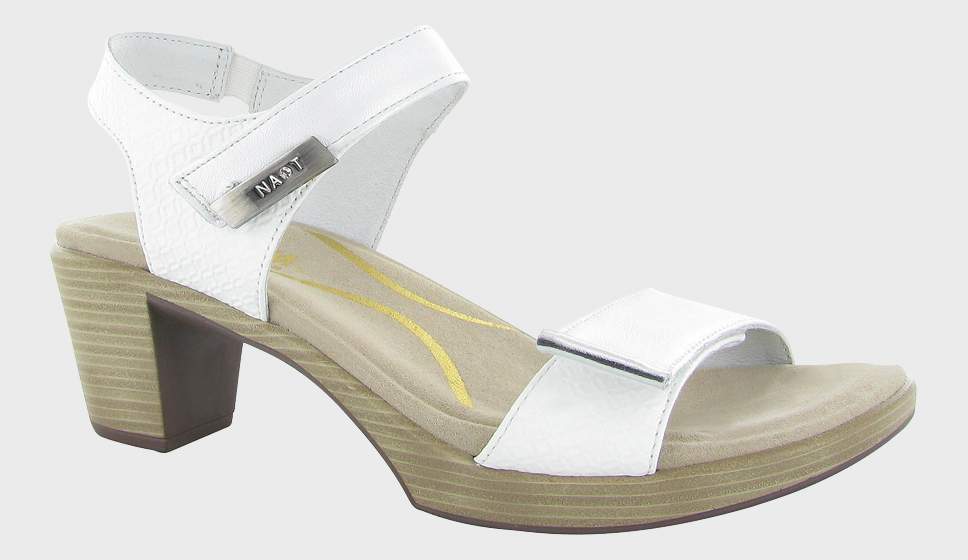 The Intact is a fashionable heel that features double hook and loop straps for complete adjustability. The Intact provides a dressier look. Naot's anatomic cork & latex footbed is wrapped in pampering suede and molds to the shape of the foot with wear. The Supreme Collection features a metal shank and provides the look of a 2.25" heel without the feel.