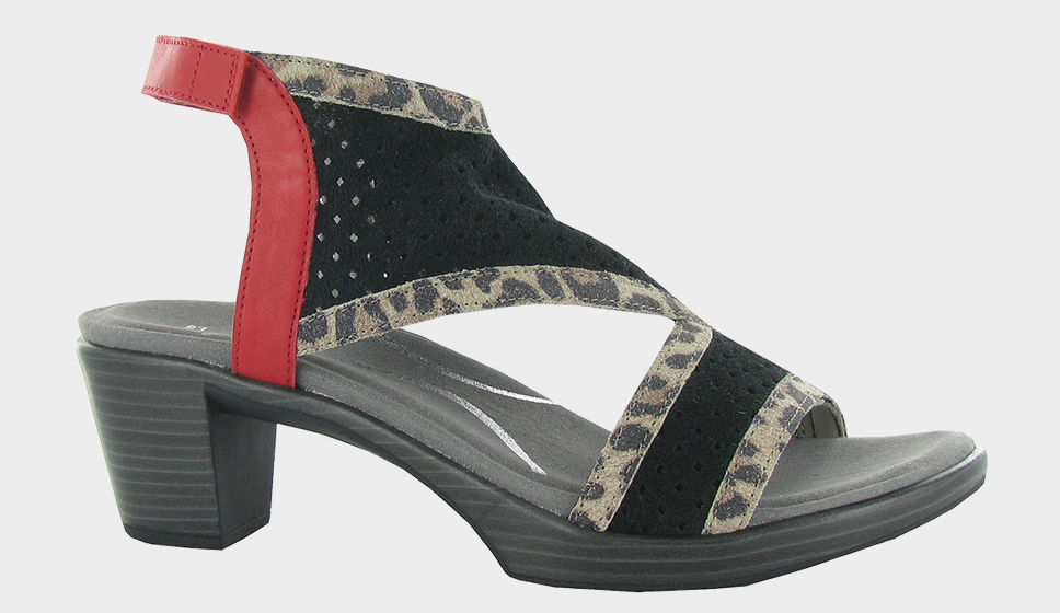 A great transitional style, the Destiny contains a hook and loop closure on the back strap for easy on/off and added stability. Naot's anatomic cork & latex footbed is wrapped in pampering suede and molds to the shape of the foot with wear. The Supreme Collection features a metal shank and provides the look of a 2.25" heel without the feel.