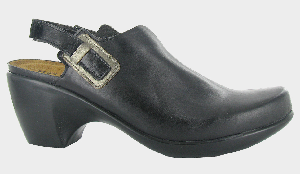 The Rich is a unique slingback shoe. Naot's anatomic cork & latex footbed is wrapped in pampering suede and molds to the shape of the foot with wear. The Eden Collection features a 2.5" polyurethane sole with a metal shank.