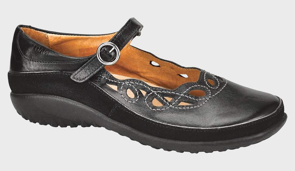 The Rahina is a feminine maryjane shoe with a unique cutout design. This style has a padded heel cup for ultimate comfort and a hook & loop closure for adjustability. The front portion has padded technical lining which provides comfort and absorbs moisture. Naot's removable, anatomic cork & latex footbed is wrapped in pampering suede and molds to the shape of the foot with wear. The Koru Collection features a 1" polyurethane sole which is extremely lightweight, durable & slip resistant. This collection uses a hand-sewn Strobel construction making it strong and extremely flexible.
