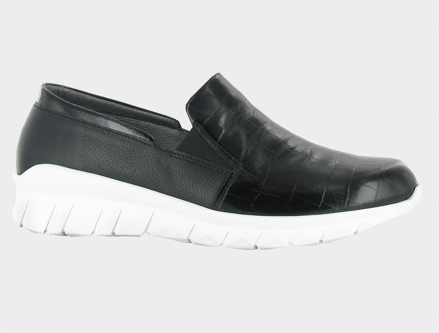 A fashionable, sneaker inspired slipon, the Titan has a removable cork & latex footbed that provides all-day comfort. This shoe features a 1.5" slip resistant sole & gore for accessibility.