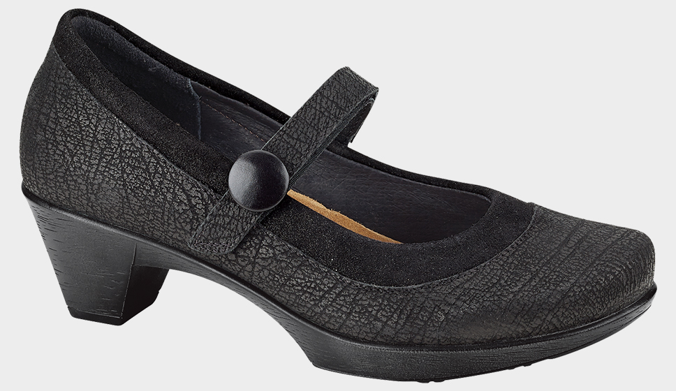 The Naot Latest is a chic maryjane heel. Naot's anatomic cork & latex footbed is wrapped in pampering suede and molds to the shape of the foot with wear. The Supreme Collection features a metal shank and provides the look of a 2.25" heel without the feel.