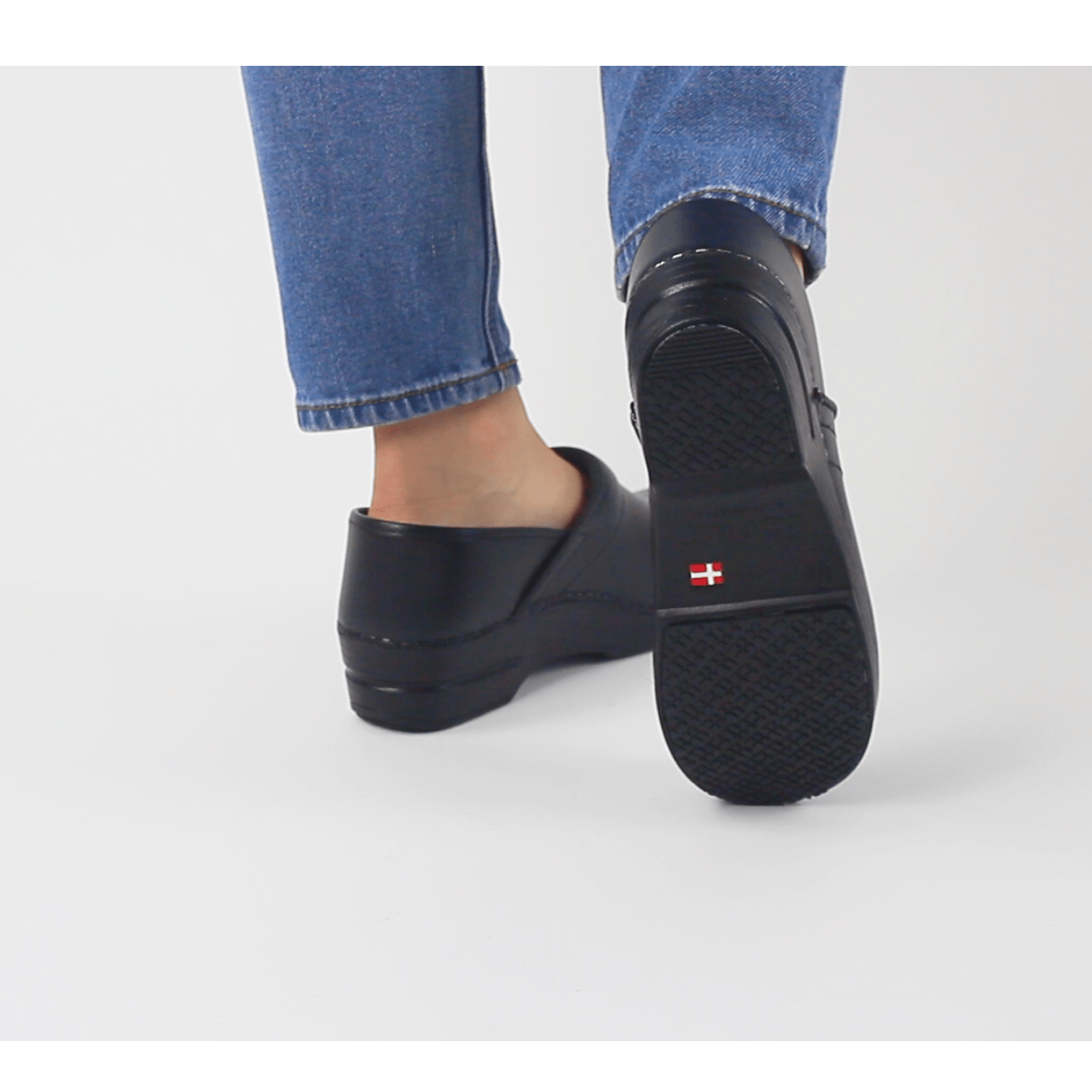 There should be a pinky sized gap between heel and back of clog, and plenty of room in toe box area. The instep will be the snuggest part of shoe and your heel should lift up slightly out of the shoe as you walk.