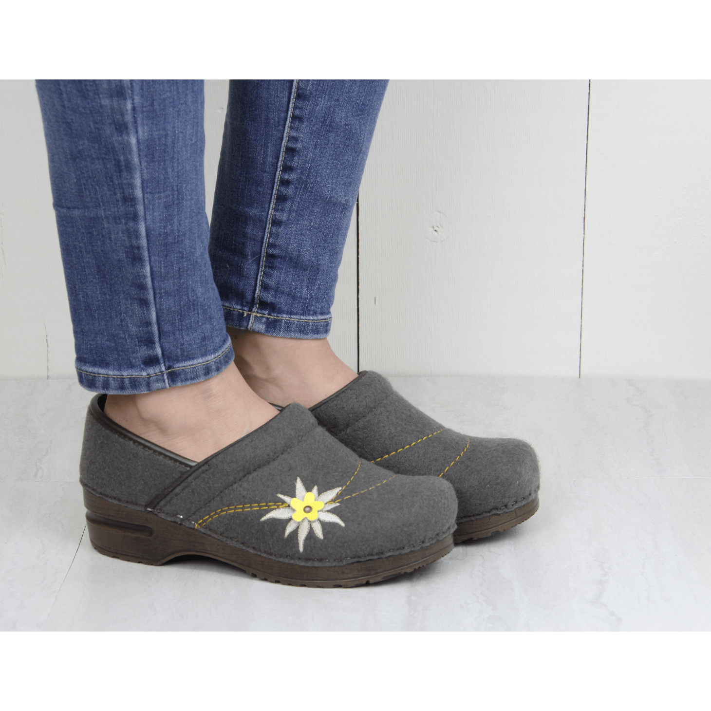 The Justine features an upper made from recycled PET material with an alpine flower applique, a padded instep and an anatomically correct footbed with microfiber insole. The polyurethane outsole features a rocker bottom. This style is approved by the APMA and part of our Professional Collection.