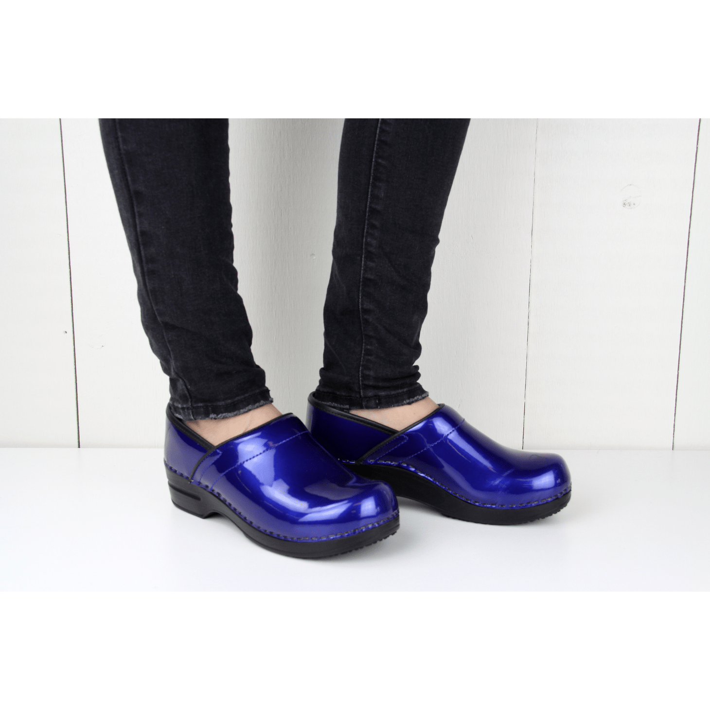 The Sabel features a blue patent leather upper and a padded instep and a microfiber insole with an anatomically correct footbed. The polyurethane outsole features a rocker bottom and this style is approved by the APMA.