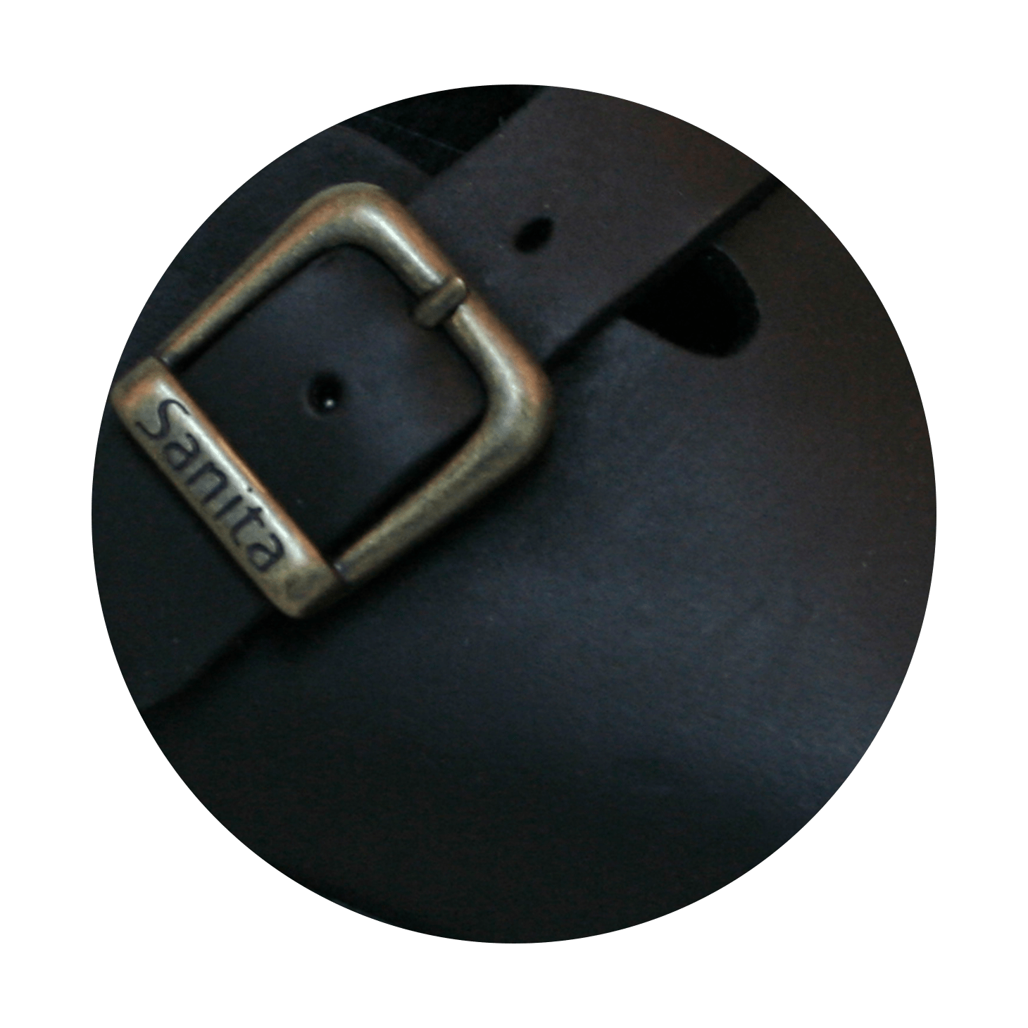 The Kristel features a black oiled nubuck leather upper with a wood midsole and a natural rubber outsole. The buckle is adjustable for a more snug fit and the instep is not padded. Made from wood harvested from FCS-approved sustainable forests.