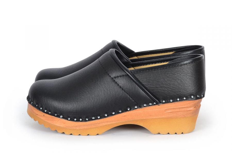 These Vegan-leather clogs are a collaboration with our friends at the French vegan brand, Good Guys Don’t Wear Leather. The clogs are made in a sturdy microfiber that is Oeko-Tex® Standard 100 class I certified and in compliance with REACH. These Van Gogh vegan closed back clogs are both eco-friendly and waterproof and made on our varnished Ideal bottoms.